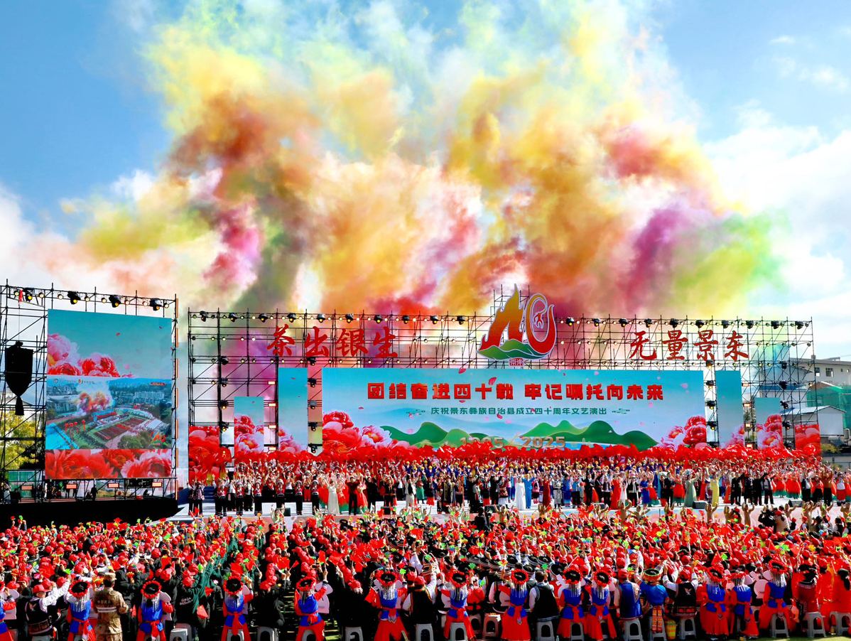 12月20日,云南省普洱市京东彝族自治县(以下简称“京东县”)举行建县40周年庆祝大会。全县各族人民身着节日盛装,载歌载舞,庆祝这一重要时刻。当天还举行了“生命之火:盛世起航”、“四十年盘山路”等主题文化艺术节目,清晰展示了京东40年的发展历程和各族人民团结发展的精神风貌。