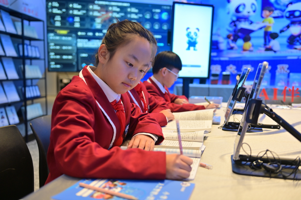2025年11月28日,辽宁省第十四届全国读书节读书仪式上,小学生写读书笔记。图片来源:新华社