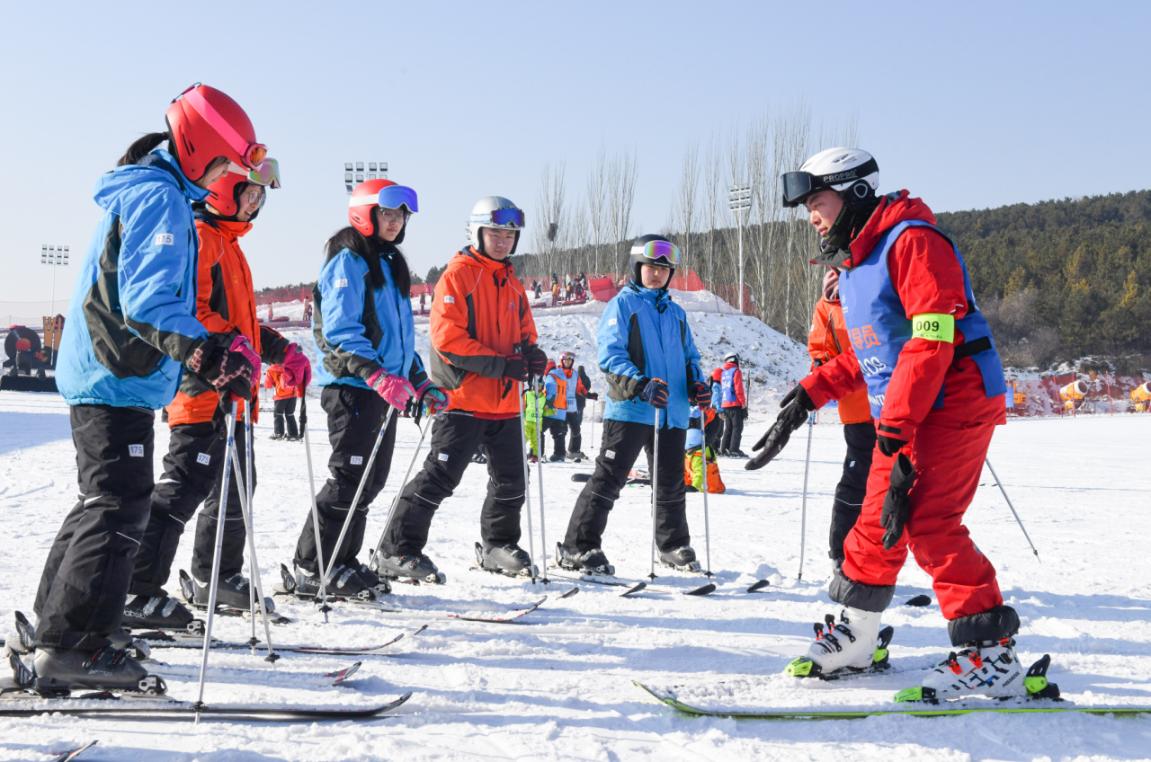 12月27日,大同万龙白山国际滑雪场,滑雪爱好者在教练的指导下练习滑雪。 (主办方供图)